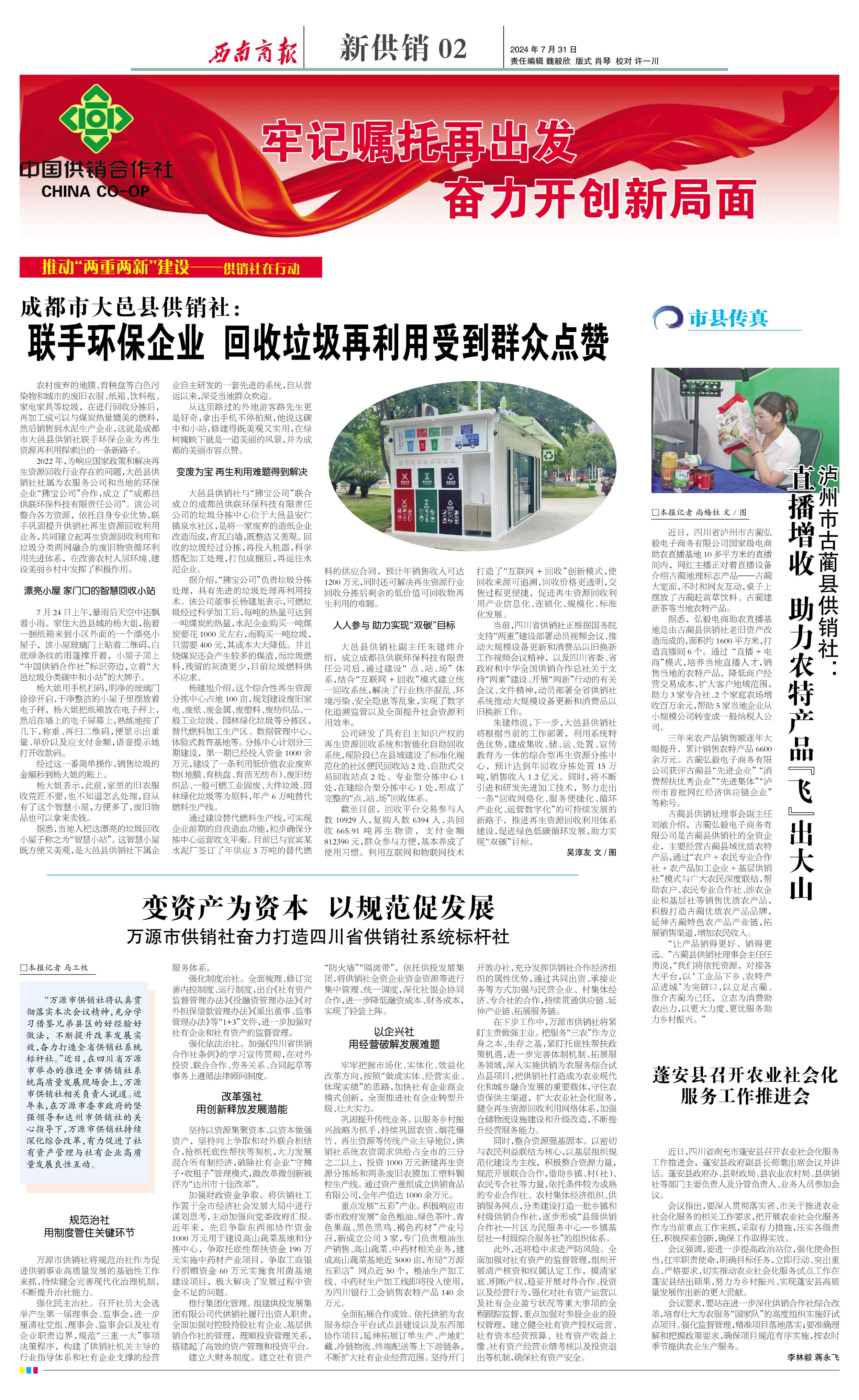 古蔺县供销社理事会副主任刘敏介绍,古蔺弘毅电子商务有限公司是古蔺县供销社的全资企业,主要经营古蔺县域优质农特产品,通过“农户+农民专业合作社+农产品加工企业+基层供销社”模式与广大农民深度联结,帮助农户、农民专业合作社、涉农企业和基层社等销售优质农产品,积极打造古蔺优质农产品品牌,延伸古蔺特色农产品产业链,拓展销售渠道,增加农民收入。
