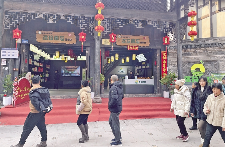 在“潼珍南忘”专柜前,顾客络绎不绝。货架上,潼南柠檬、绿色蔬菜、特色加工品琳琅满目,包装精美统一。“这些产品都产自潼南,品质有保证,很受消费者欢迎。”销售人员介绍道。