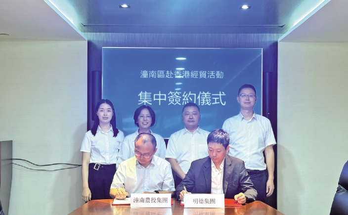 今年以来,该集团聚焦深化改革,进一步加快国际业务拓展,多渠道加强潼南农产品供港业务开发,相关产品于6月1日至6月5日期间在香港维多利亚公园举行的香港第三届同乡社团家乡市集嘉年华展销活动亮相。在港期间,代表团先后参加嘉年华展销活动,深度拜访了香港厂商联合会、香港中华进出口商会、九龙果蔬同业商会3家商会,就农产品精深加工、数字农业、鲜销贸易等进行深入交流;与3家知名公司签订相关销售合作协议,就智慧农业示范基地、标准化种植区与种养循环体系、农产品品牌营销、供应链体系建设、进出口贸易、跨境电商等开展全方面、深层次、多领域的合作。潼南区农投集团积极接入“潼越山海”新引擎,全力服务潼南区农产品实现供港,助推“潼南绿”绽放香江。