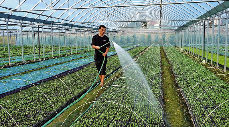 近日,四川省巴中市南江县公山镇流坝社区蔬菜专业合作社育苗基地,几位农民正在蔬菜育苗大棚中有条不紊地给培育的甘蓝、莴笋、白菜等10多个品种的晚秋蔬菜苗喷水、除草,准备在立秋后为农民种植晚秋蔬菜提供粗壮、无病虫害的菜苗。