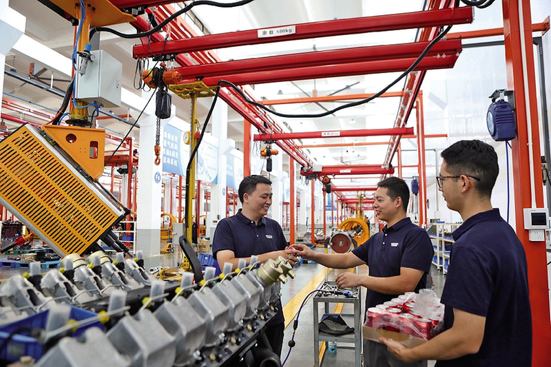 8月12日,位于重庆市永川国家高新区凤凰湖产业园的重庆磐谷动力技术有限公司,工人们在忙碌生产柴油发动机的同时,享受着公司提供的免费清凉降暑饮料。