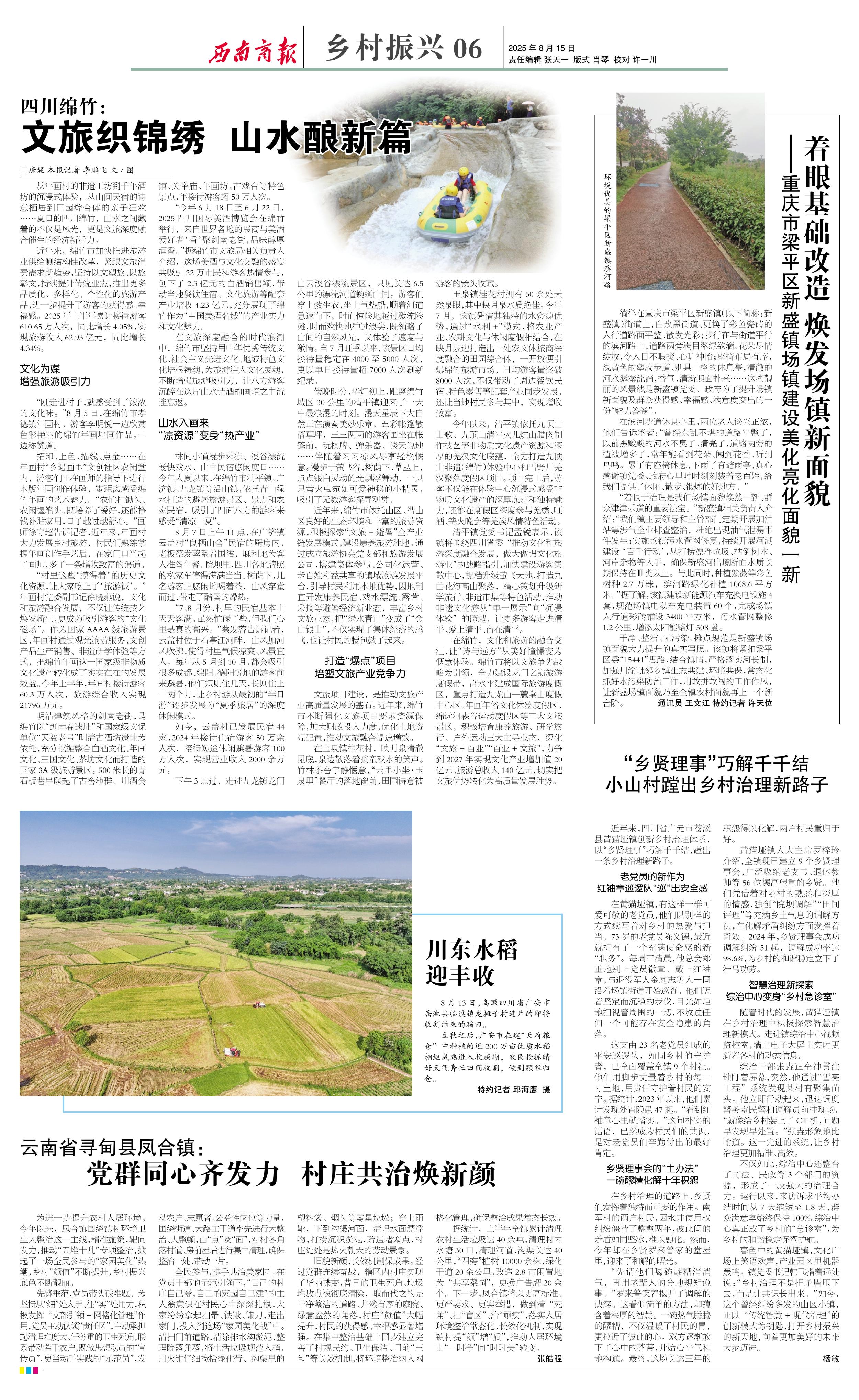 “着眼于治理是我们场镇面貌焕然一新、群众津津乐道的重要法宝。”新盛镇相关负责人介绍:“我们镇主要领导和主管部门定期开展加油站等涉气企业排查整治,杜绝出现油气泄漏事件发生;实施场镇污水管网修复,持续开展河湖建设‘百千行动’,从打捞漂浮垃圾、枯倒树木、河岸杂物等入手,确保新盛河出境断面水质长期保持在Ⅲ类以上。与此同时,种植紫薇等彩色树种2.7万株,滨河路绿化补植1068.6平方米。”据了解,该镇建设新能源汽车充换电设施4套,规范场镇电动车充电装置60个,完成场镇人行道彩砖铺设3400平方米,污水管网整修1.2公里,增添太阳能路灯508盏。