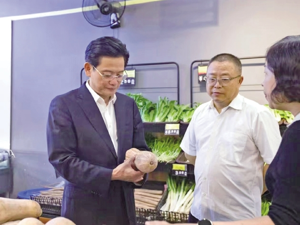 在南充市高坪区浩然·江东农贸市场,蔡邦银详细了解了市场运营情况,现场查看了市场基础设施、菜品菜价等情况。他强调,供销社系统要始终坚守为农服务的初心使命,持续完善市场管理服务,规范经营秩序,推动市场管理向规范化、精细化方向发展,努力为经营户和市民营造“干净整洁、规范有序”的优质市场环境,切实提升市民的获得感和幸福感。