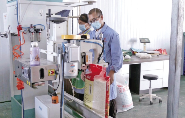 10月15日上午,涪田粮油的生产车间内,现代化生产场景扑面而来:自动化生产线高速运转,传送带上的新鲜大米颗粒饱满,经过精准筛选后平稳输送至包装环节;装袋、称重、捆扎等工序一气呵成,一袋袋封装完好的成品大米被有序转运至仓储货区。令人惊叹的是,整个生产流程仅需10余名工人便可高效把控,自动化设备的广泛应用不仅大幅降低了人力成本,更确保了每一批次产品的品质稳定。