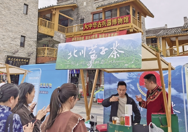 在禹王广场,指导老师全程跟进直播,协助学员将理论知识转化为实操能力。“行走的北小融”“非遗茶师达哥”“北川羌妹子实业”等本地主播现场直播带货,推广北川苔子茶、腊肉、蓝莓制品等农特产品,实惠的价格、优质的产品吸引不少网友下单。