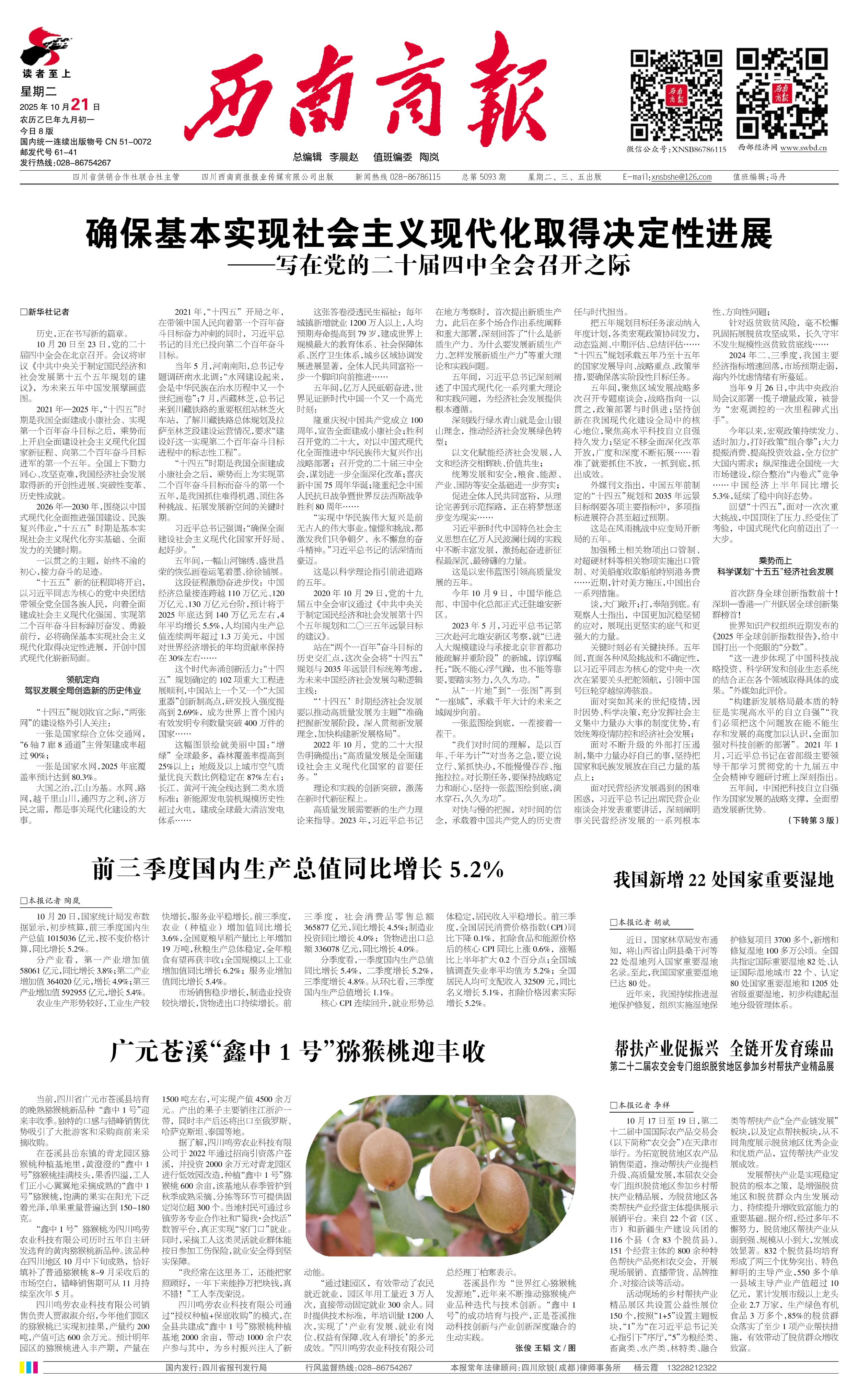 前三季度国内生产总值同比增长5.2%