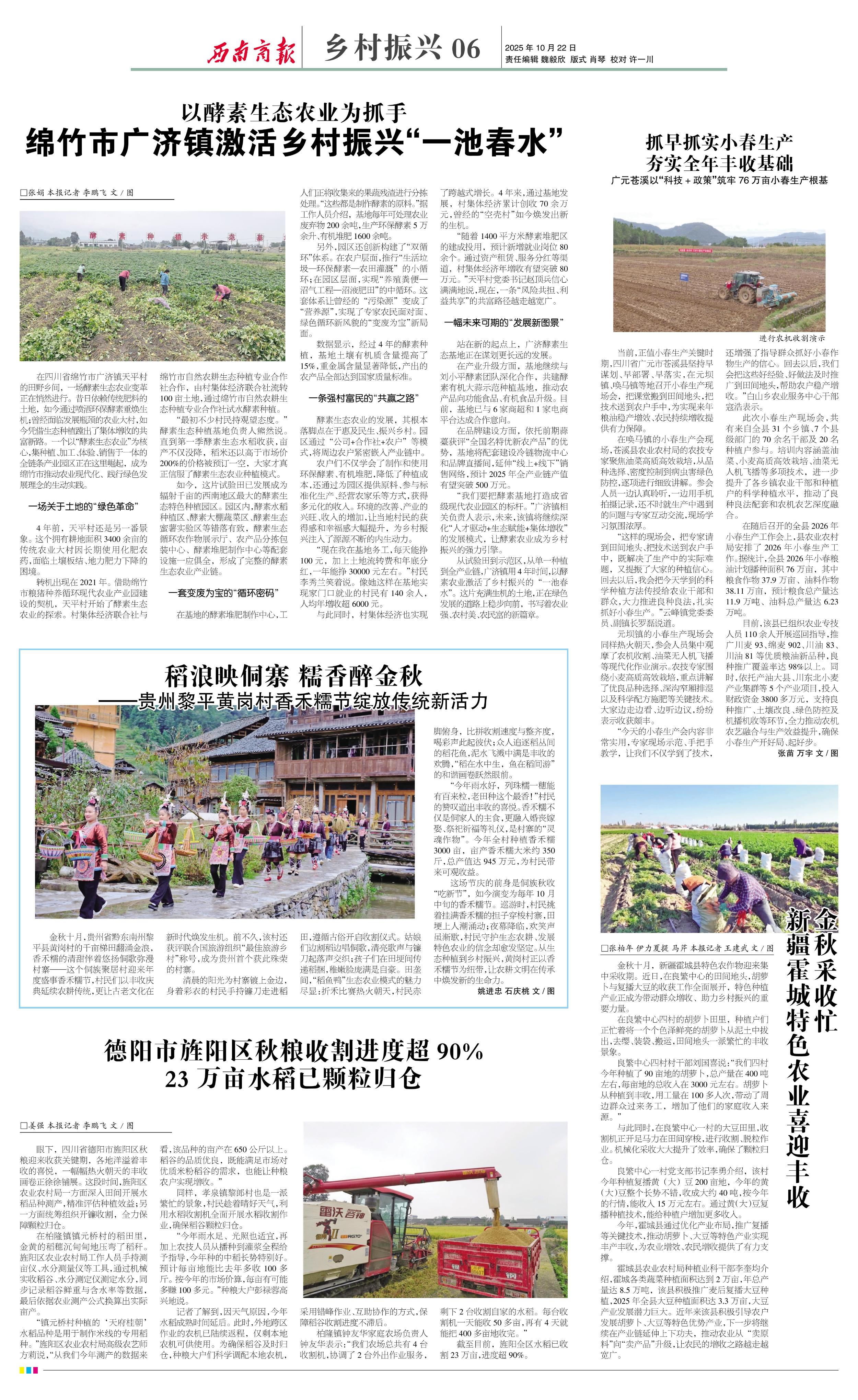 目前,该县已组织农业专技人员110余人开展巡回指导,推广川麦93、绵麦902、川油83、川油81等优质粮油新品种,良种推广覆盖率达98%以上。同时,依托产油大县、川东北小麦产业集群等5个产业项目,投入财政资金3800多万元,支持良种推广、土壤改良、绿色防控及机播机收等环节,全力推动农机农艺融合与生产效益提升,确保小春生产开好局、起好步。