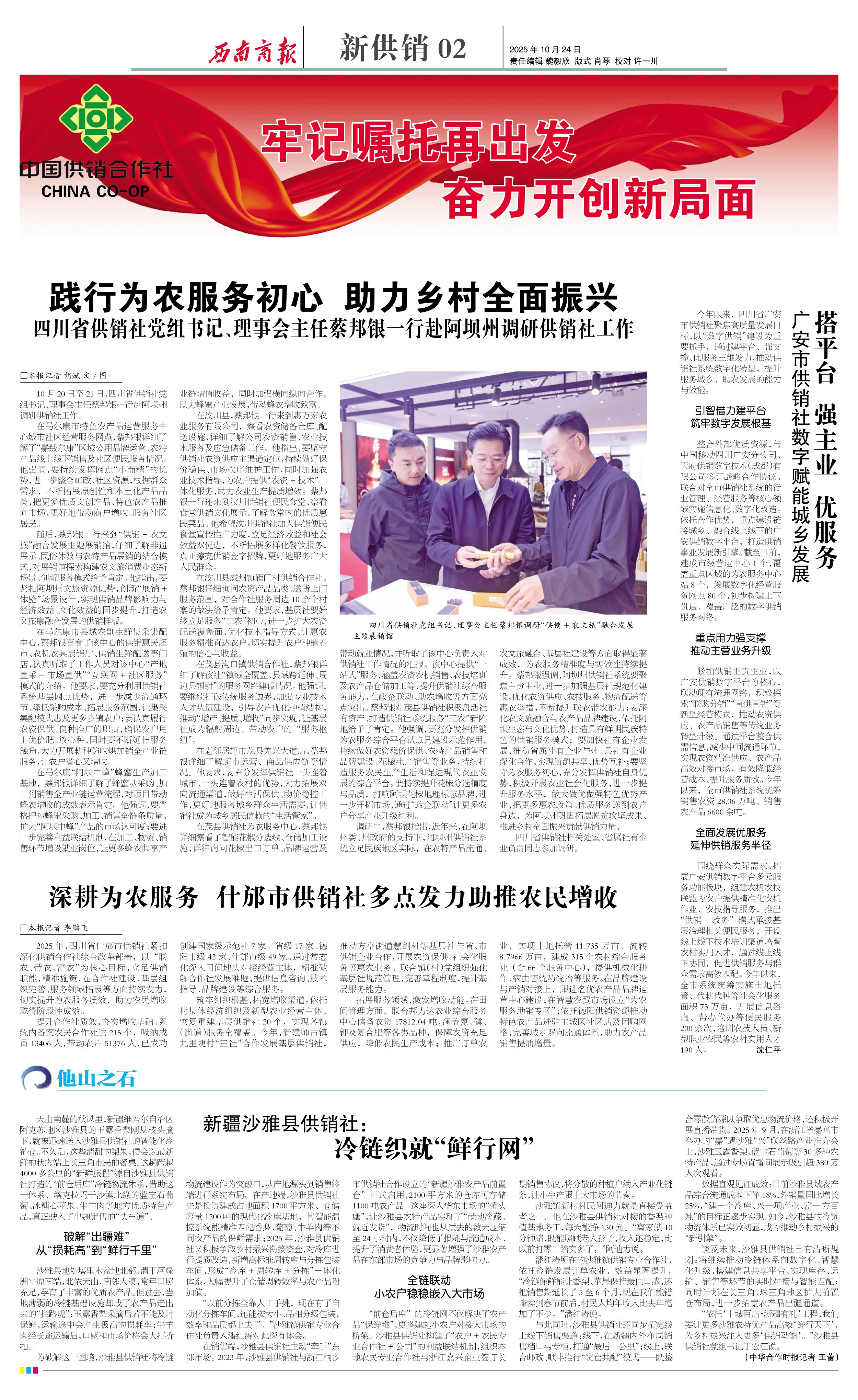 今年以来,四川省广安市供销社聚焦高质量发展目标,以“数字供销”建设为重要抓手,通过建平台、强支撑、优服务三维发力,推动供销社系统数字化转型,提升服务城乡、助农发展的能力与效能。