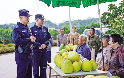 “老乡,线上订单一定要确认到账再发货,莫轻信转账截图!”10月30日下午,四川省广安市公安局广安区分局邓小平故居派出所民警易权龙穿梭在龙安乡群策村龙安柚母本园中,挨家挨户开展反诈宣传。金秋时节,柚香满园,民警的身影与丰收的果农一道,构成一幅警民携手、共筑平安的生动画面。