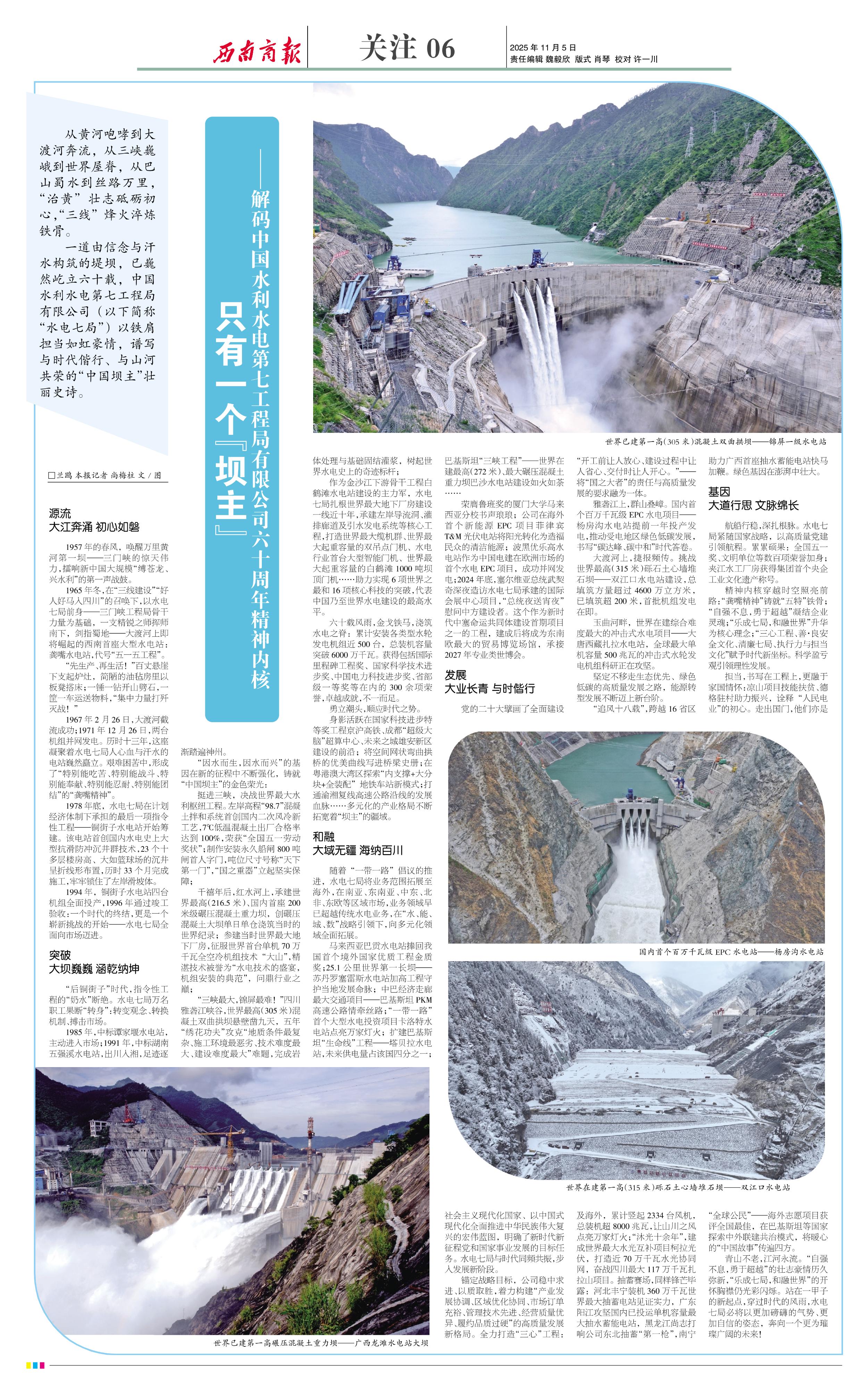 一道由信念与汗水构筑的堤坝,已巍然屹立六十载,中国水利水电第七工程局有限公司(以下简称“水电七局”)以铁肩担当如虹豪情,谱写与时代偕行、与山河共荣的“中国坝主”壮丽史诗。