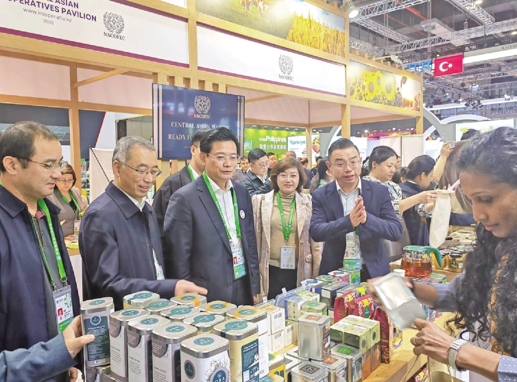 蔡邦银在“国际合作社联盟”专属展区巡展 □本报记者 胡斌 文/图
