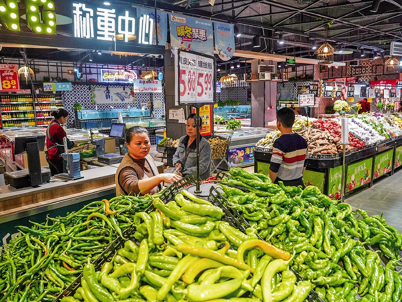 11月9日,顾客在贵州省黔东南苗族侗族自治州从江县一家超市选购商品。