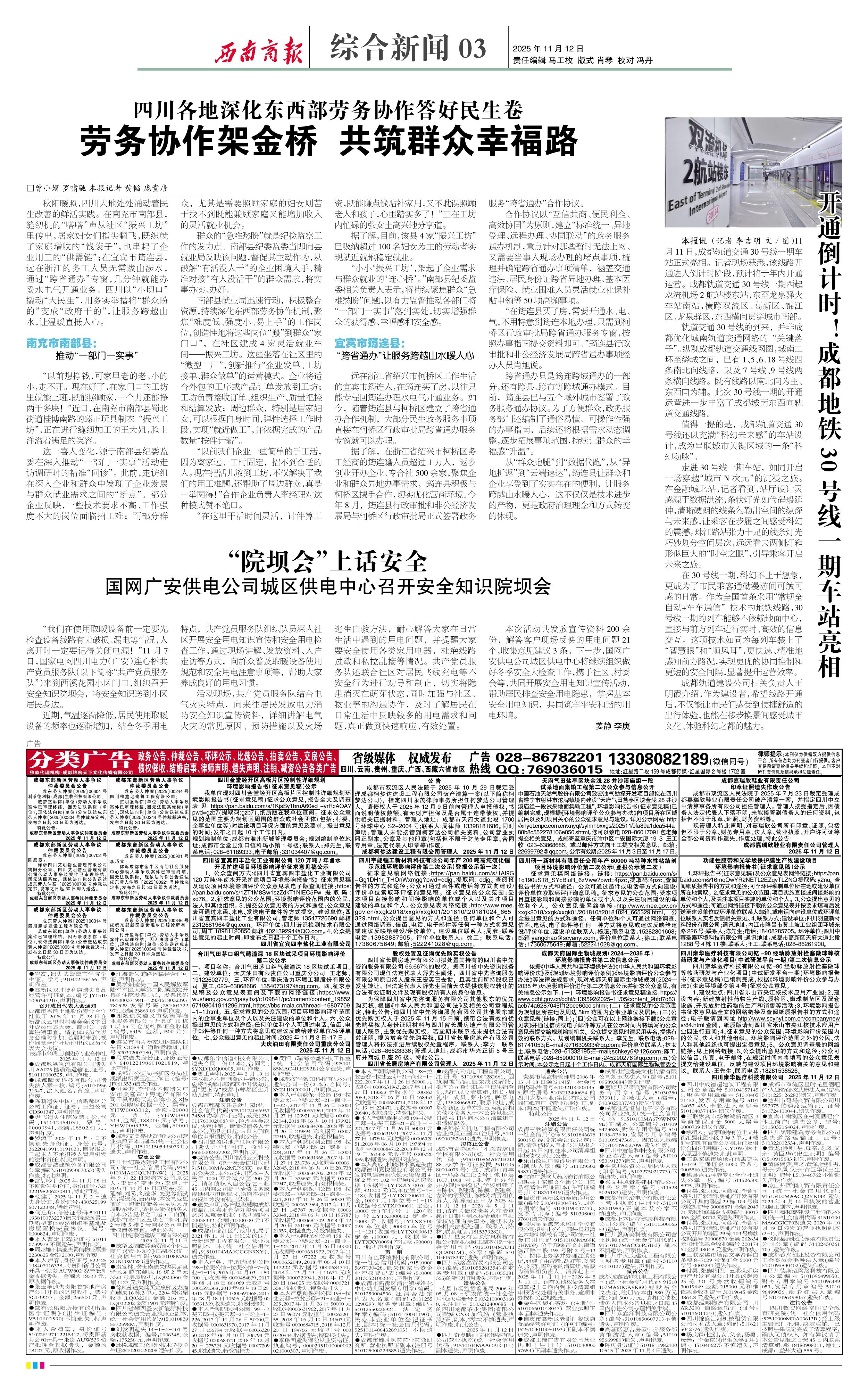 本报讯(记者 李吉明 文/图)11月11日,成都轨道交通30号线一期车站正式亮相。记者现场获悉,该线路开通进入倒计时阶段,预计将于年内开通运营。成都轨道交通30号线一期西起双流机场2航站楼东站,东至龙泉驿火车站南站,横跨双流区、高新区、锦江区、龙泉驿区,东西横向贯穿城市南部。