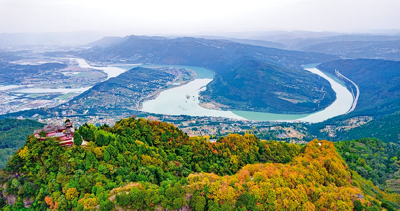 初冬暖阳,层林尽染。当前,四川省广元市昭化区牛头山正迎来彩林最佳观赏期。漫山红黄交织的绚烂景致,与独一无二的自然山水太极景观相映成画,成为游客初冬打卡的热门目的地。