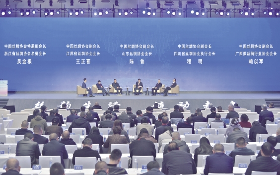大会期间,中国丝绸协会副会长兼秘书长刘文全作《中国丝绸协会第八届四次理事会工作报告》;中国蚕学会理事长、西南大学桑蚕纺织与生物质科学学院院长代方银作《“十五五”中国蚕桑产业发展趋势展望报告》;世界自然基金会项目总监王倩作《国际丝绸可持续发展报告》;浙江大学中国与全球经济政策研究中心主任顾国达作《国际贸易政策变化议程三对丝绸业的影响分析报告》。
