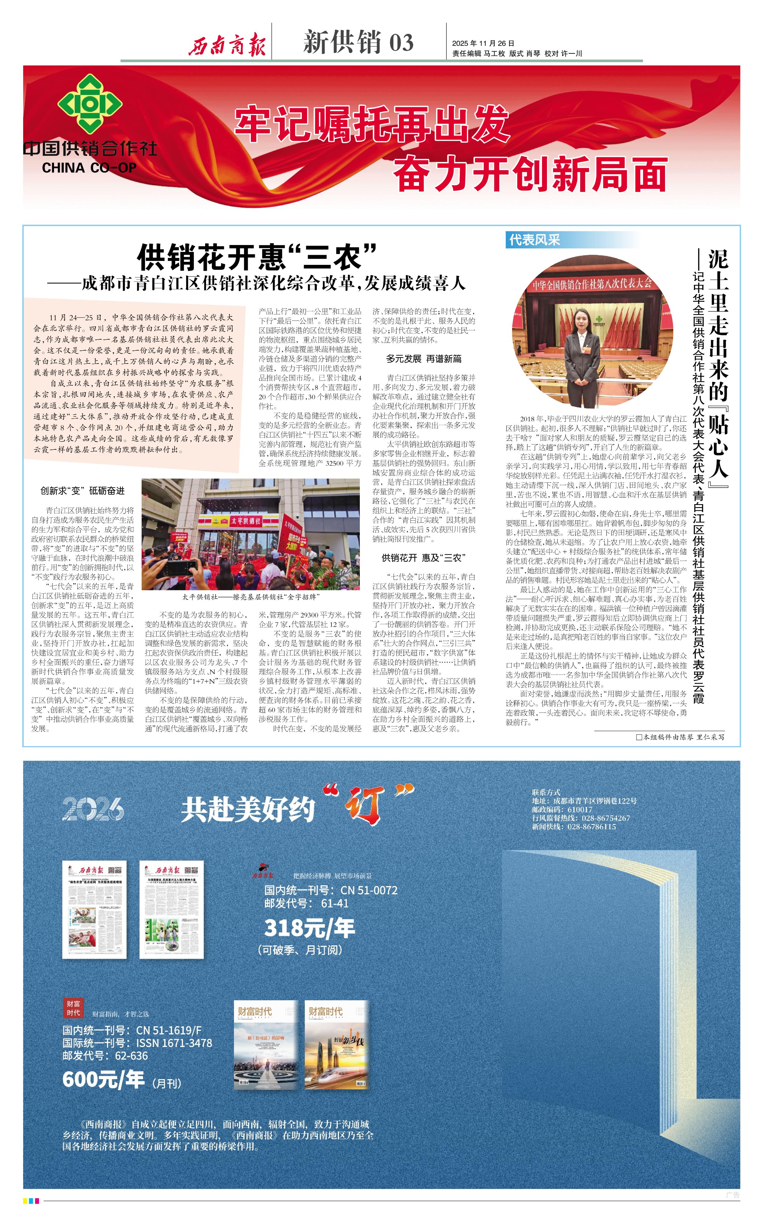 自成立以来,青白江区供销社始终坚守“为农服务”根本宗旨,扎根田间地头,连接城乡市场,在农资供应、农产品流通、农业社会化服务等领域持续发力。特别是近年来,通过建好“三大体系”,推动开放合作攻坚行动,已建成直营超市8个、合作网点20个,并组建电商运营公司,助力本地特色农产品走向全国。这些成绩的背后,有无数像罗云霞一样的基层工作者的默默耕耘和付出。