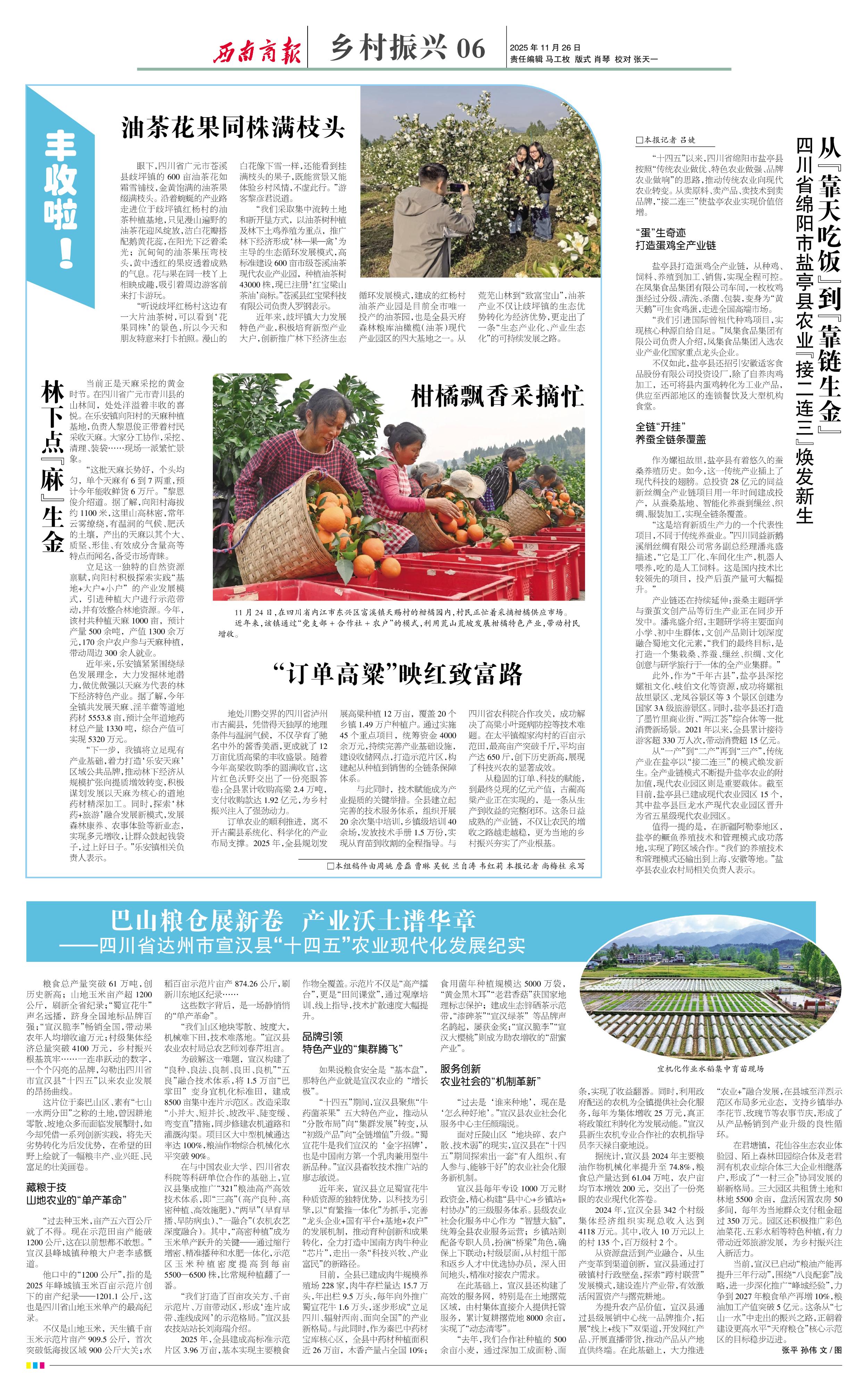柑橘飘香采摘忙 11月24日,在四川省内江市东兴区富溪镇天赐村的柑橘园内,村民正忙着采摘柑橘供应市场。 近年来,该镇通过“党支部+合作社+农户”的模式,利用荒山荒坡发展柑橘特色产业,带动村民增收。