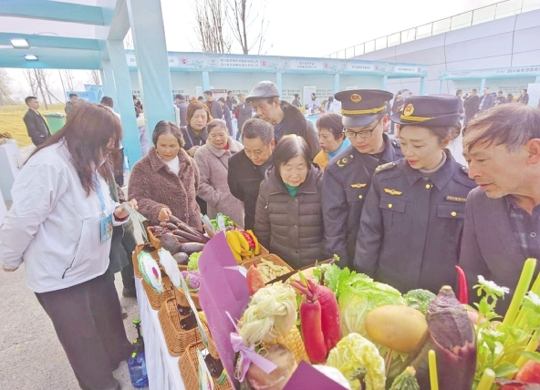 “供销集市”的展位上,来自四川各地的优质农产品琳琅满目,让消费者目不暇接。四川川供天下农业发展有限公司带来的玉米笋、樱桃小萝卜、黑玫瑰番茄等新品种颇具特色,刚亮相就围满好奇的消费者。工作人员现场递出掰好的玉米笋供大家试吃,市民王嬢嬢品尝后笑着称赞:“吃着还不错,带着水果味,甜得刚好。”
