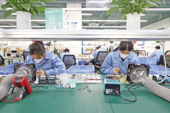 园区捌三肆一生产车间工人正在生产 □本报记者 李祥 实习记者 王天昊 文/图