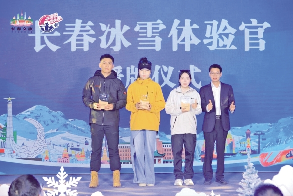 推介会现场,特别设置滑雪达人分享环节。本地运动生活达人以“周末两日特种兵”为主题,发布“雪季开板!2025冬天去长春滑雪”实用攻略,内容涵盖交通、住宿、雪场特色与行程安排,为追求高效旅行的年轻消费群体提供了“说走就走”的攻略参考。随后,长春市文化广播电视和旅游局局长张辉勇为成都三位文旅达人授予“长春冰雪体验官”称号。