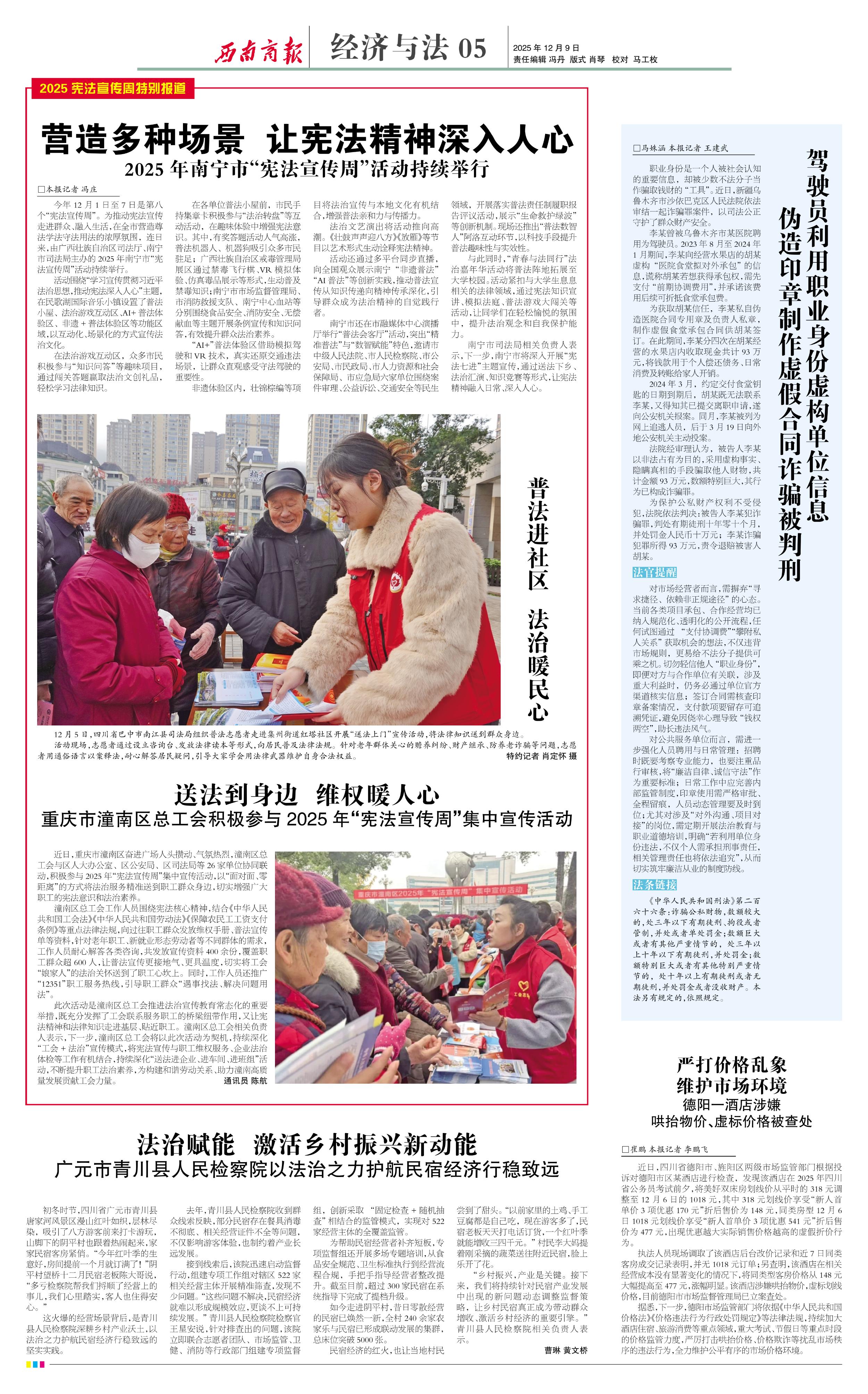 初冬时节,四川省广元市青川县唐家河风景区漫山红叶如织,层林尽染,吸引了八方游客前来打卡游玩,山脚下的阴平村也跟着热闹起来,家家民宿客房紧俏。“今年红叶季的生意好,房间提前一个月就订满了!”阴平村望桥十二月民宿老板陈大哥说,“多亏检察院帮我们捋顺了经营上的事儿,我们心里踏实,客人也住得安心。”