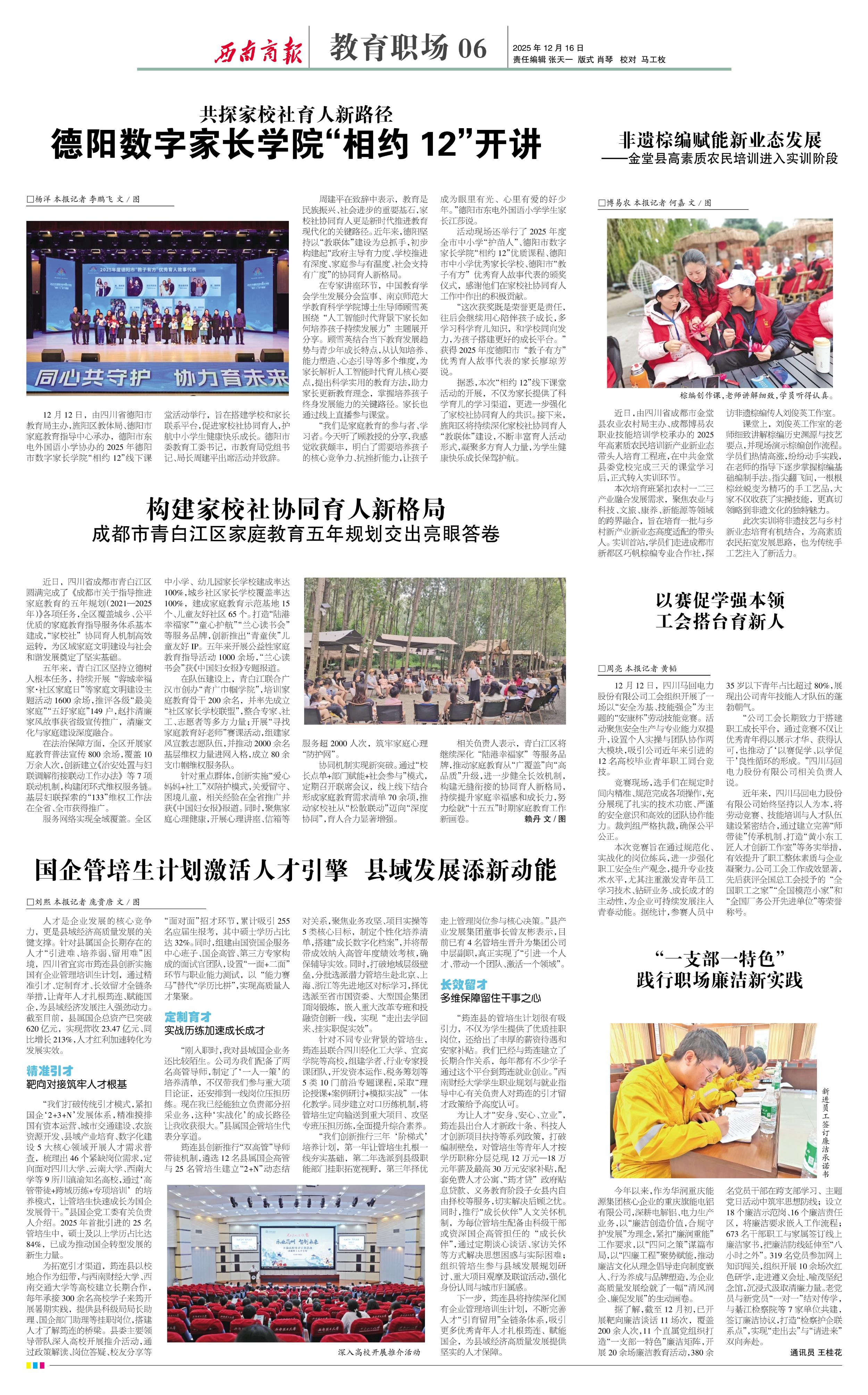 “我们打破传统引才模式,紧扣国企‘2+3+N’发展体系,精准摸排国有资本运营、城市交通建设、农旅资源开发、县域产业培育、数字化建设5大核心领域开展人才需求普查,梳理出46个紧缺岗位需求,定向面对四川大学、云南大学、西南大学等9所川滇渝知名高校,通过‘高管带徒+跨域历练+专项培训’的培养模式,让管培生快速成长为国企发展骨干。”县国企党工委有关负责人介绍。2025年首批引进的25名管培生中,硕士及以上学历占比达84%,已成为推动国企转型发展的新生力量。