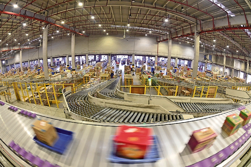 12月16日,在位于重庆市沙坪坝区的永辉物流有限公司常温配送中心,自动化高速分拣线高速运转。该自动化分拣系统可快速准确完成货物的分拣,降低物流成本并提高效率,进而拓展企业盈利空间。近年来,该物流配送中心依托互联网、大数据等先进技术,通过智能高速拣货系统,实现物流配送效率大幅提高。