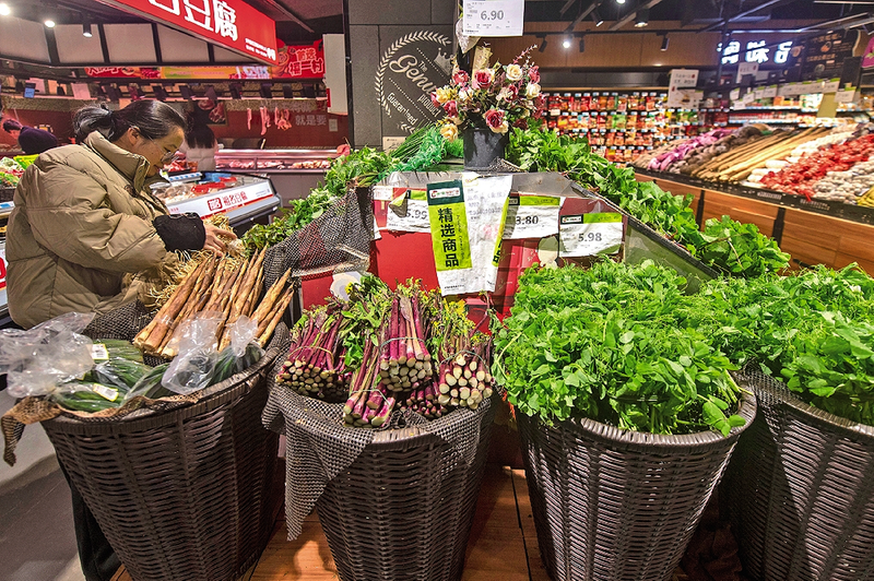 1月9日,市民在贵州省黔东南苗族侗族自治州从江县一家超市购买果蔬。