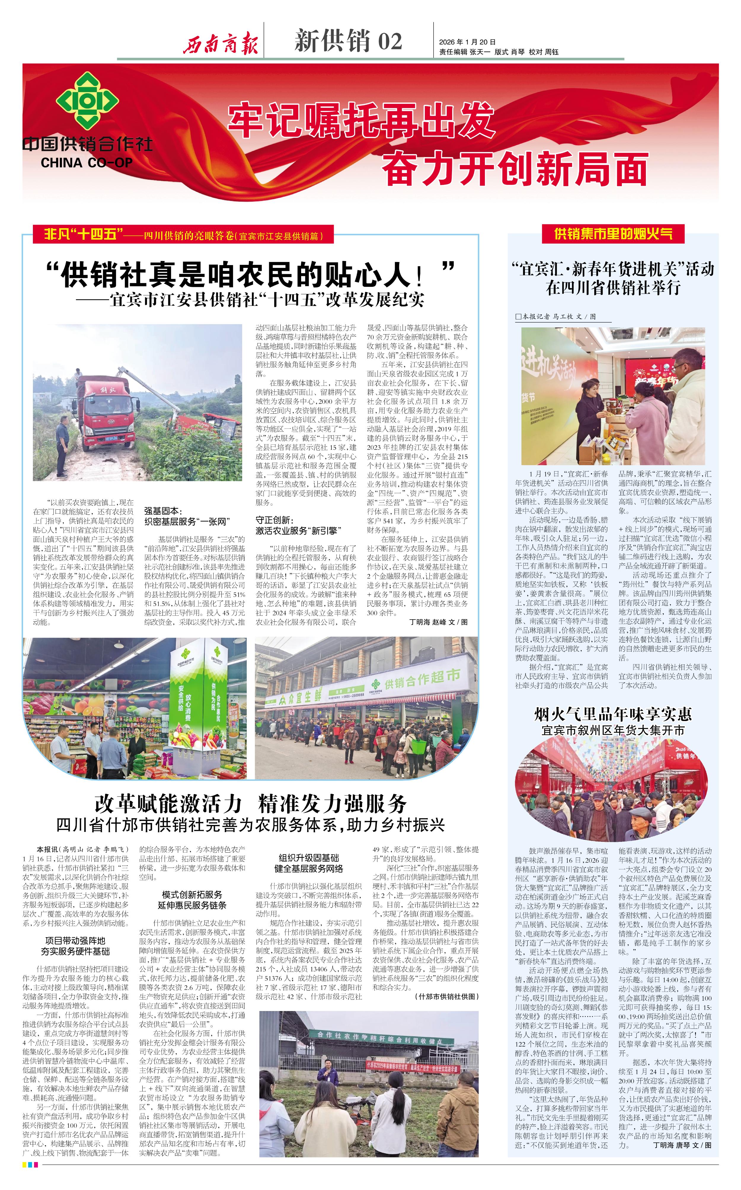 “以前买农资要跑镇上,现在在家门口就能搞定,还有农技员上门指导,供销社真是咱农民的贴心人!”四川省宜宾市江安县四面山镇天泉村种植户王大爷的感慨,道出了“十四五”期间该县供销社系统改革发展带给群众的真实变化。五年来,江安县供销社坚守“为农服务”初心使命,以深化供销社综合改革为引擎,在基层组织建设、农业社会化服务、产销体系构建等领域精准发力,用实干与创新为乡村振兴注入了强劲动能。