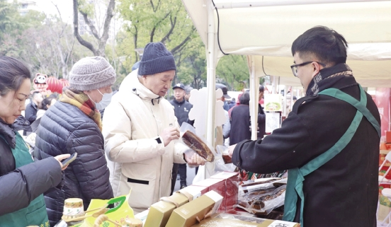 四川展区内,每一件产品都是地域风土的深情馈赠。眉山爱媛果冻橙皮薄多汁,清甜中浸润着阳光的鲜润;马边黑猪肉香肠肉质饱满,裹挟着彝家村寨的温暖烟火;荥经砂器釉光温润,承载着古老烧制技艺的匠心智韵;自贡冷吃兔鲜麻劲爽,泸州白酒醇厚绵长,沐川魔芋清新解腻……从食品、调味品、休闲零食到茶饮酒水、非遗手作,六大类川味尖货全面覆盖市民年货采购需求。“我们现场蒸制巴中酱肉小笼包,就是想让大家尝到最地道的川味美食。”一位四川商户热情介绍道。据悉,所有参展商品均经过严格筛选,确保品质上乘、特色鲜明。