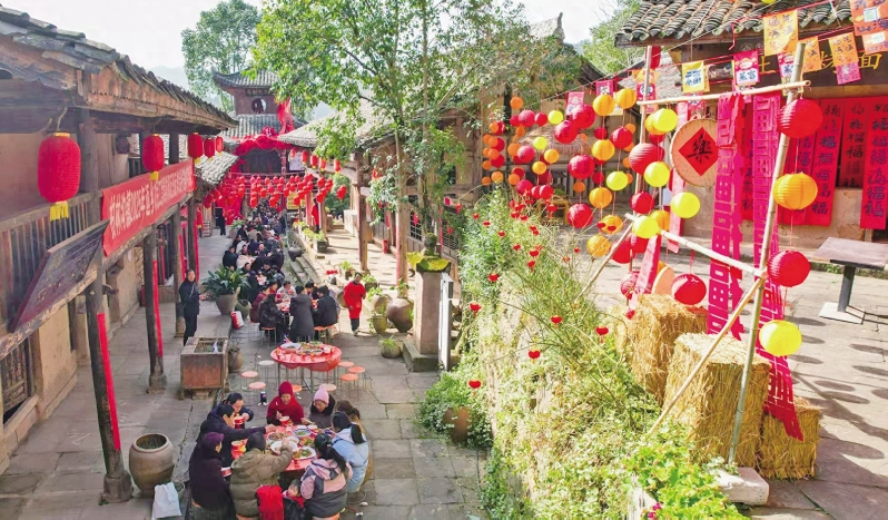 围坐餐桌旁,邻里乡亲畅谈家常,返乡游子举杯叙旧,外地游客沉浸式体验乡土风情,一碗碗地道菜肴盛满乡愁,一个个趣味红包传递福气。“这么多人一起吃团圆饭迎新春,菜品丰富,又热闹,希望新一年生活蒸蒸日上!”柏林沟镇长岭村村民刘素君的话语道出了众人的心声。