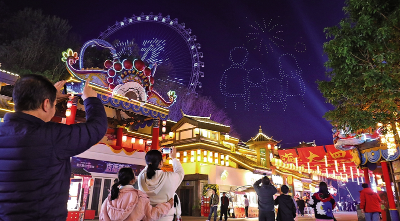 在这个春节,无人机灯光秀表演团队点亮了重庆的节日夜空,绘就了一幅科技与艺术交融的璀璨画卷。