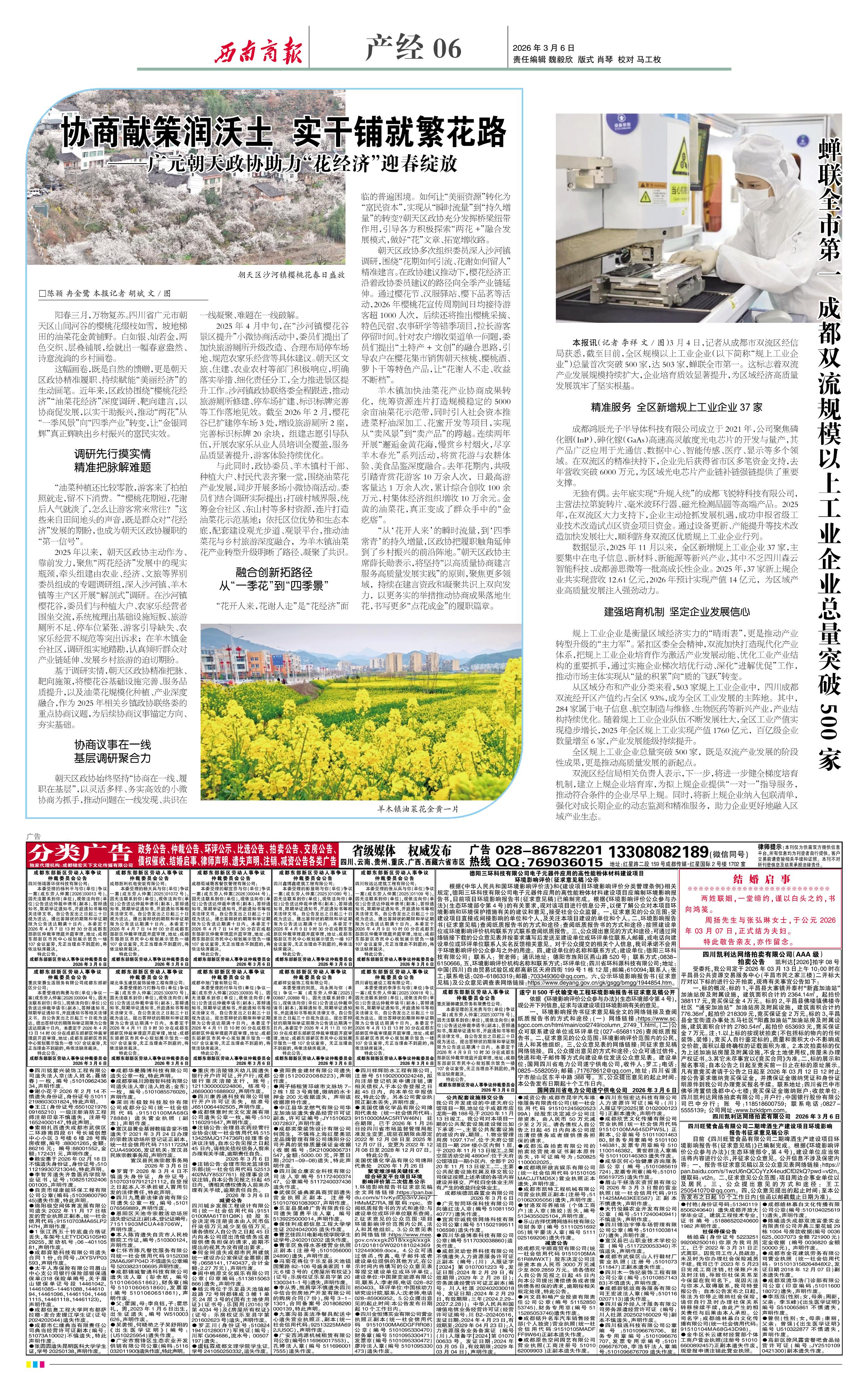 数据显示,2025年11月以来,全区新增规上工业企业37家,主要集中在电子信息、新材料、新能源等新兴产业,其中不乏四川森云智能科技、成都善思微等一批高成长性企业。2025年,37家新上规企业共实现营收12.61亿元,2026年预计实现产值14亿元,为区域产业高质量发展注入强劲动力。