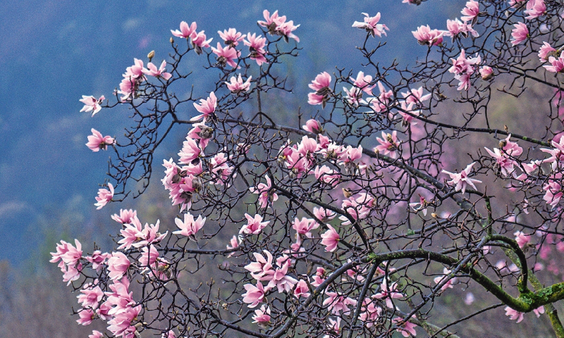在桂溪镇九皇山、药王谷景区,漫山辛夷正褪去寒意、蓄力绽放,粉的、白的、红的、紫的花朵,缀满枝头,如烟似霞,美不胜收。山间清风裹挟着花苞的清甜,有人举镜定格初绽芳华,有人随羌家姑娘共跳沙朗,欢声笑语间,羌山春日的氛围感满满。