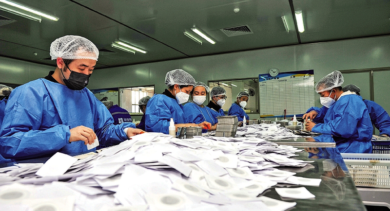 3月16日,在贵州省从江县一家医药科技企业生产车间内,生产线高效运转,现场呈现出一派繁忙有序的生产景象,工人们全力以赴赶订单、抢进度,奋力冲刺首季“开门红”。