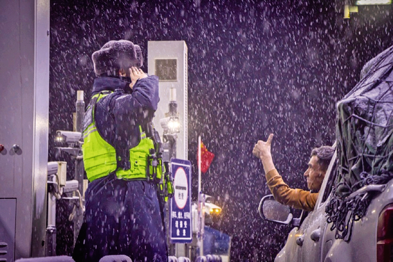 3月16日,受寒潮影响,新疆帕米尔高原腹地突降大雪,气温骤降至零下。面对恶劣天气,新疆出入境边防检查总站克州边境管理支队盖孜边境检查站的移民管理警察全员在岗,顶风冒雪坚守执勤一线,在风雪中保障边境通道畅通,守护过往群众出行平安。