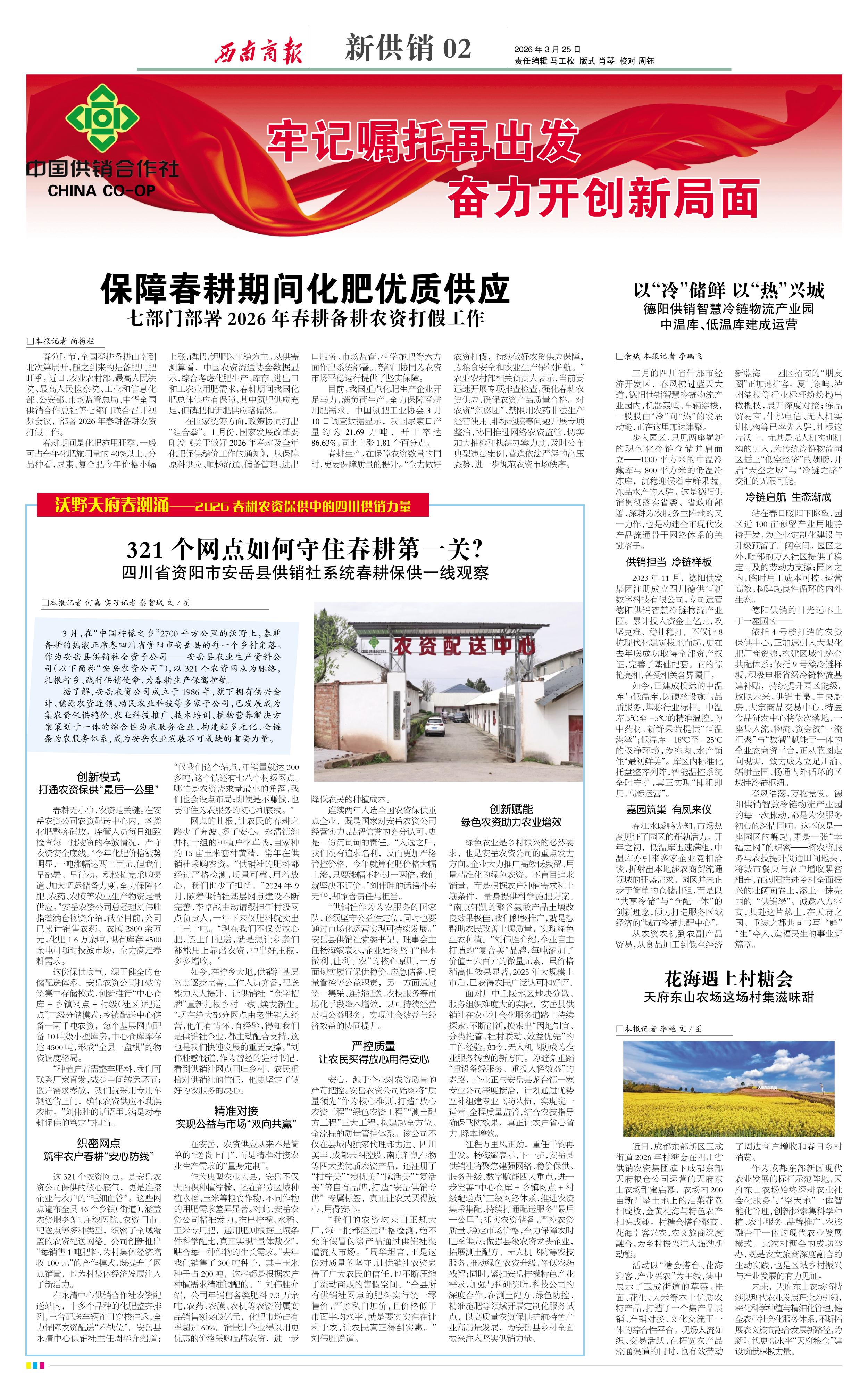 春风浩荡,万物竞发。德阳供销智慧冷链物流产业园的每一次脉动,都是为农服务初心的深情回响。这不仅是一座园区的崛起,更是一张“幸福之网”的织密——将农资服务与农技提升贯通田间地头,将城市餐桌与农户增收紧密相连,在德阳推进乡村全面振兴的壮阔画卷上,添上一抹亮丽的“供销绿”。诚邀八方客商,共赴这片热土,在天府之国、重装之都共同书写“鲜”“生”夺人、造福民生的事业新篇章。