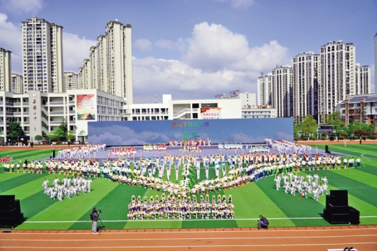 上午10点整,开幕式正式开始。国旗方队、会旗方队、彩旗方队依次入场,拉开入场仪式序幕。随后,来自广安区、前锋区等8个代表团方阵,迈着矫健的步伐依次通过主席台。入场仪式后,一场气势恢宏、极具华蓥特色的大型文体展演精彩上演。演出通过《蓥光山水·绿韵新生》《烽火年华·红色铸魂》《芳华非遗·文脉传承》《征途少年·蓝梦启航》等多个主题篇章,将华蓥的生态底色、红色基因、非遗文化与青春梦想巧妙融合。2000余名师生全情投入,通过情景表演、非遗展示、科技互动等形式,生动演绎了华蓥的绿色生态、红色精神、非遗传承与少年梦想,展示了华蓥市深厚的历史文化底蕴和蓬勃向上的城市风采。