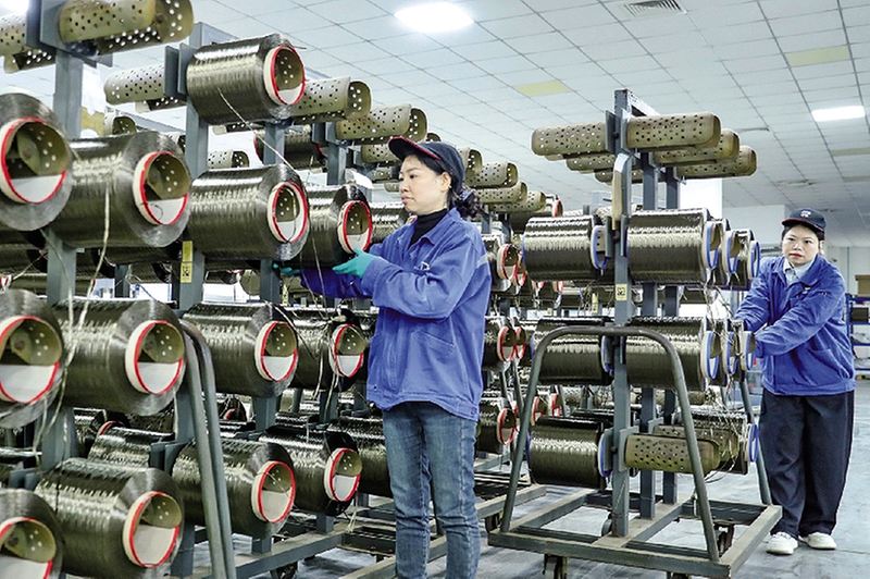 3月24日,四川省华蓥市华蓥山经济开发区四川谦宜复合材料有限公司的员工,在络纱车间赶制“华蓥造”原丝,为实现一季度“开门红”奠定基础。