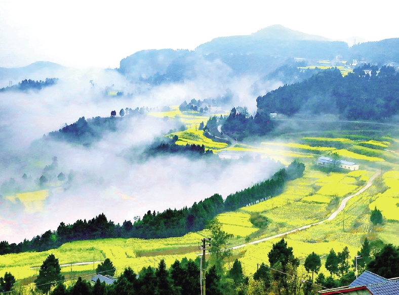 春风拂过川北群山,这片西南最大的人工湖便醒了,油菜花泼洒金黄,桃花李花点缀山野,湖面薄雾如纱,正是水清鱼肥、繁花似锦的好时节。春季的升钟湖,正是一年中最温柔的时候。