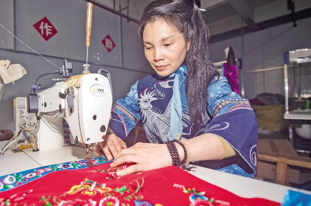 目前,王玉英的公司已拥有电脑绣花机24台、电脑平车机10台,年销售收入200余万元,产品销往贵州、广西等地。企业固定就业妇女40余人,2016年以来累计培训800余人次,让更多农村妇女掌握了“指尖技艺”。