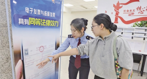 “之前总觉得电子发票操作复杂,怕开错了不能用,今天税务老师手把手教了一遍,才知道手机上点点就能完成开票,不用跑窗口、不用填繁琐资料,几分钟就搞定了,真是太方便了!”刚成功开出电子发票的个体工商户张女士,拿着手机满脸欣喜地说。