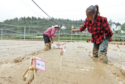 4月13日,谷雨将至,春耕春播正酣。四川省广元市昭化区王家贡米科研育种试验示范基地里,王家贡米产业技术研究所首席专家陈定全俯身指导工人精准点播,一边细心地将稻种轻按入土,一边叮嘱:“一定要把种子按实、贴紧土壤,才能更好地吸收水分、顺利出苗……”这是他从海南南繁归来后的首次直播播种,这些跨越千里的珍贵育种材料,将在卫子镇安家落户,开启新一轮良种攻关。