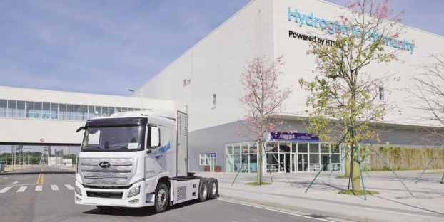 现代汽车自1998年就开始进行氢燃料电池的研发,如今在氢动力领域处于领先地位。现代商用车走的是“技术引入、全球协同”的路子。其搭载的氢燃料电池系统来自现代HT-WO广州,也是现代汽车在海外的首个氢燃料电池基地,其发电效率超64%,可以有效净化空气中99.9%的颗粒物细粉尘和各类空气污染物,被誉为“移动的空气净化器”。