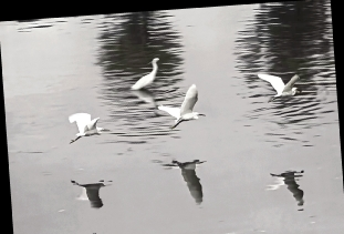四只白鹭是贴近镜湖突然的灵动