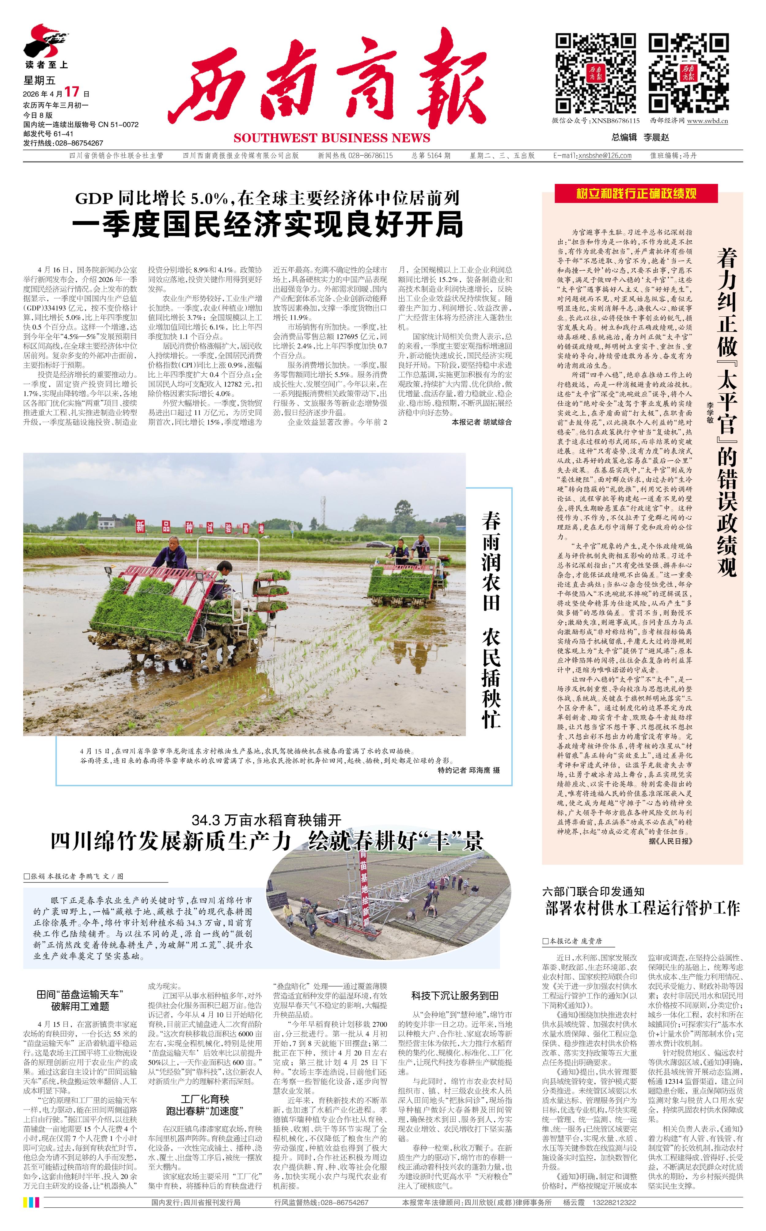 四川绵竹发展新质生产力 绘就春耕好“丰”景