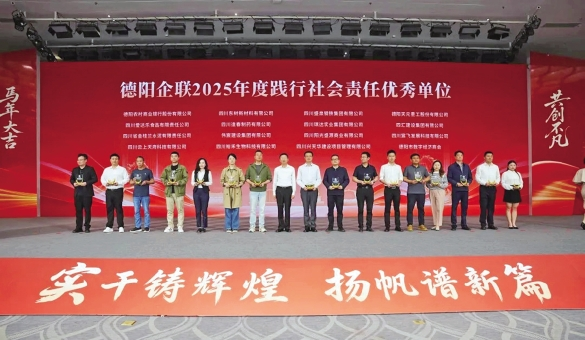 年会对“德阳企联2025年度践行社会责任优秀单位”“德阳企联2025年度优秀会员单位”“德阳企联2025年度优秀理事单位”“德阳企联2025年度优秀副会长单位”进行了颁奖。