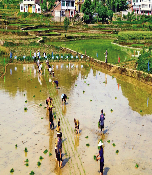 春光明媚,水田如镜,农耕正当时。近日,四川省宜宾市筠连县沐爱镇兴隆村举办以“小手习农耕,童心忆乡愁”为主题的第三届“开秧门”活动,邀请大人带孩子下田学插秧、品小吃、玩游戏,沉浸式体验传统农耕文化,感受乡土情怀,为乡村振兴注入文化活力。