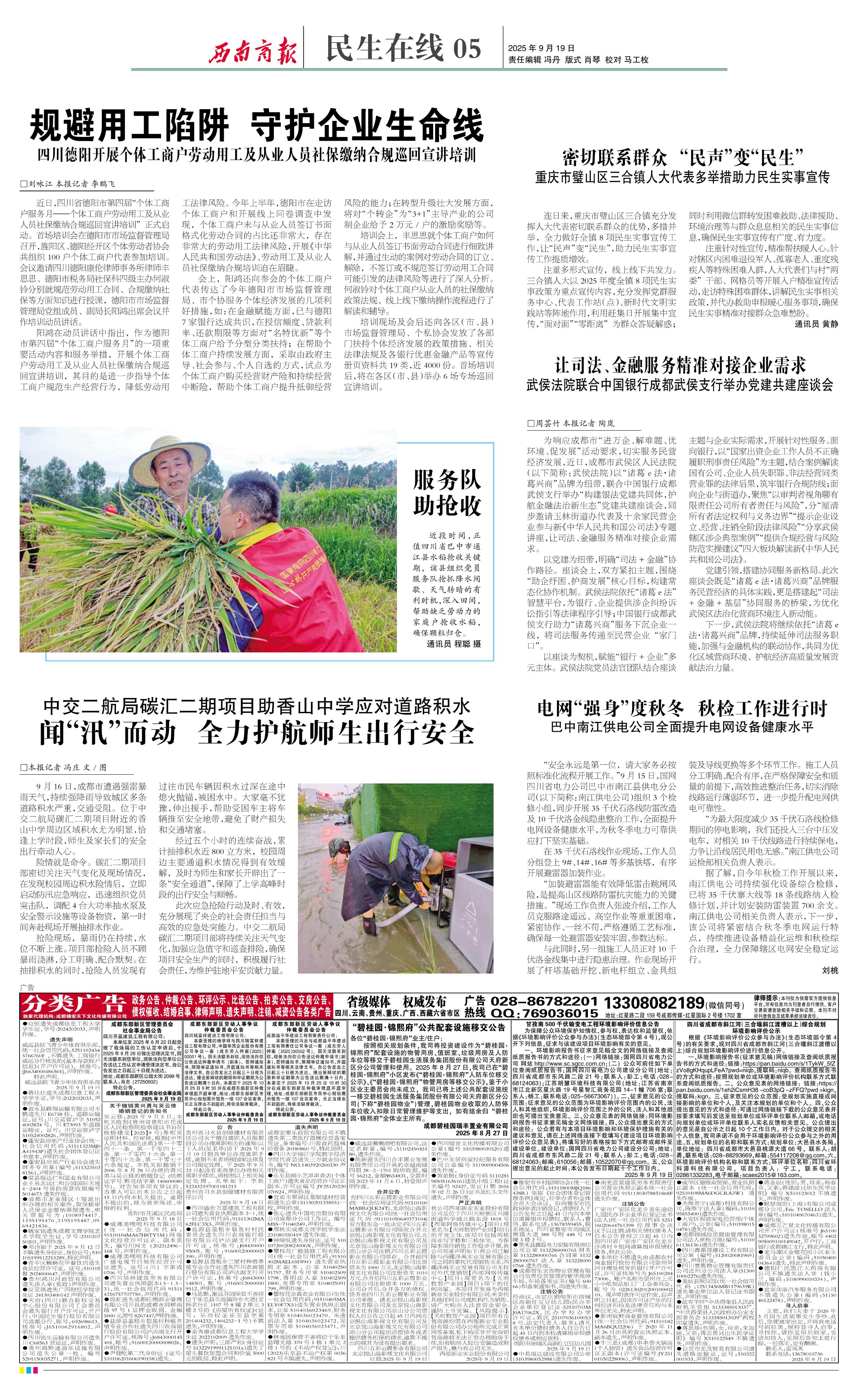 9月16日,成都市遭遇强雷暴雨天气,持续强降雨导致城区多条道路积水严重,交通受阻。位于中交二航局碳汇二期项目附近的香山中学周边区域积水尤为明显,恰逢上学时段,师生及家长们的安全出行牵动人心。