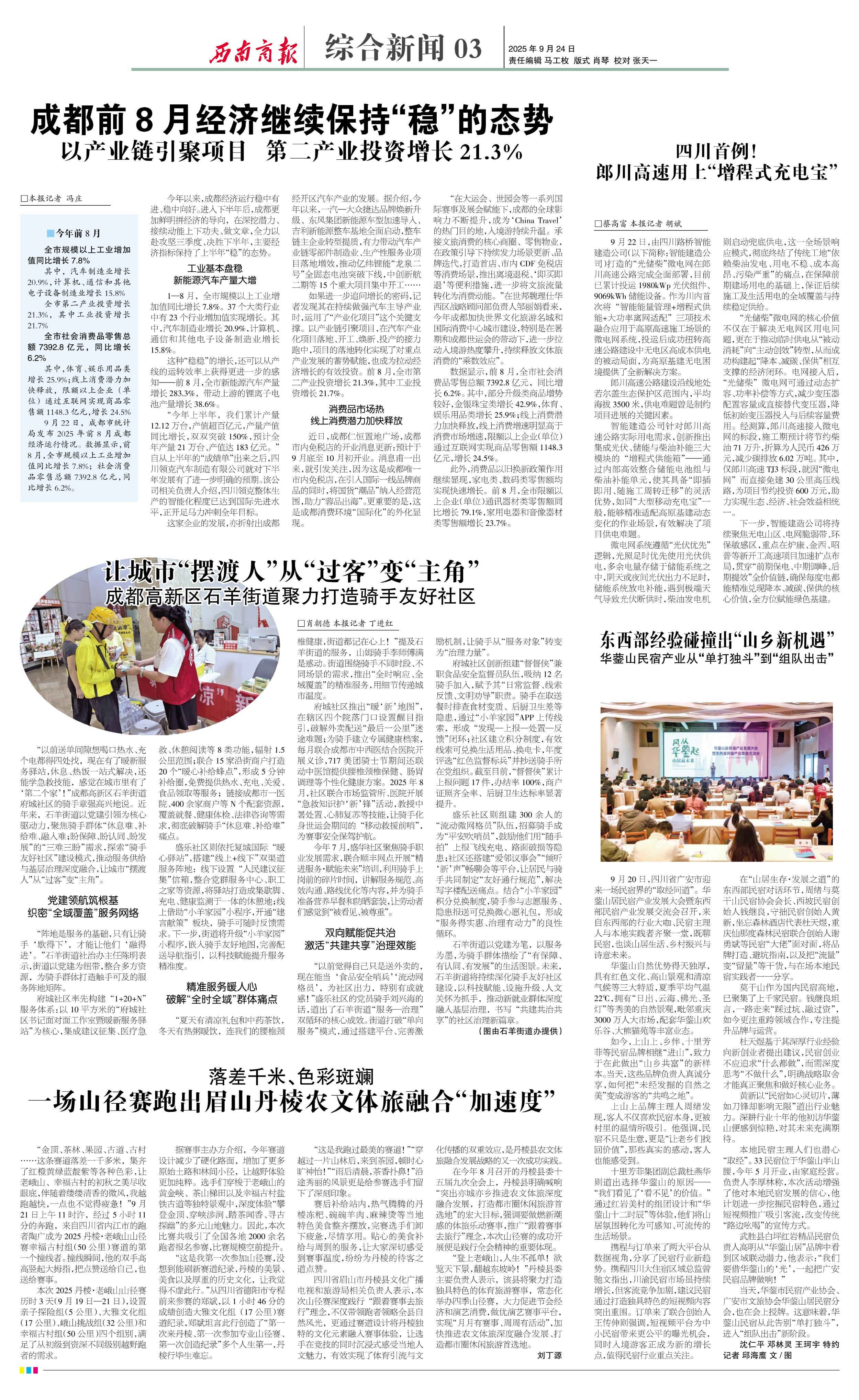 9月22日,成都市统计局发布2025 年前 8月成都经济运行情况。数据显示,前8月,全市规模以上工业增加值同比增长7.8%;社会消费品零售总额7392.8亿元,同比增长6.2%。